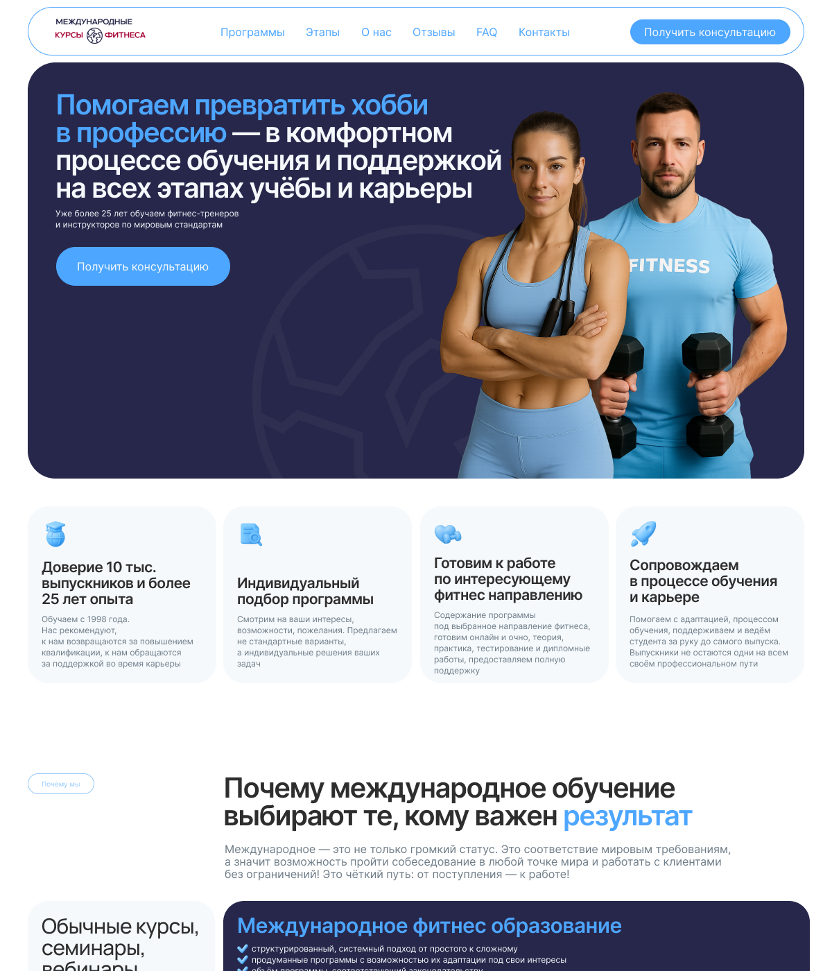 Международная школа фитнеса хотела полностью обновить визуальную часть сайта, чтобы сделать его современным, понятным и привлекательным для аудитории из разных стран